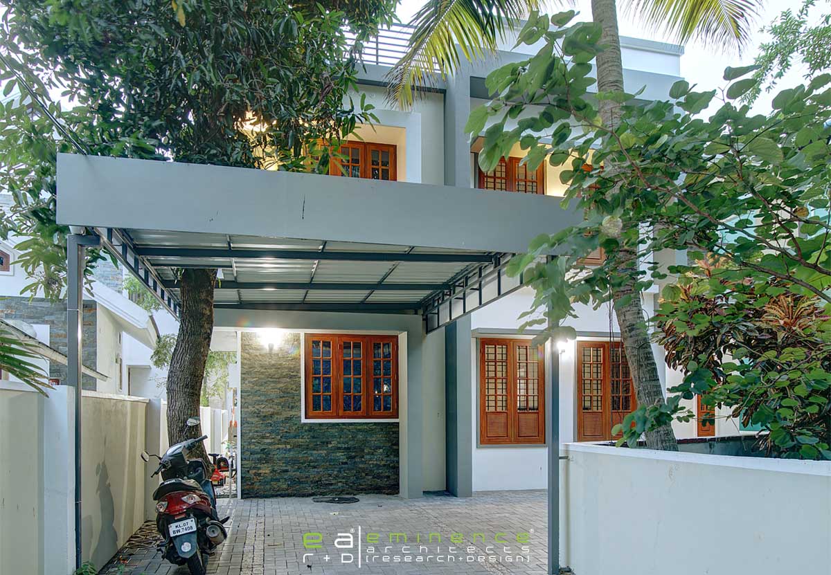 The site is located at tripunithura, the suburb of Ernakulam, Kerala. It’s a rectangular plot with a passage leading from the road on the south side, houses on both east and west side and the rear side with a small gully road. The client’s brief was to have a spacious house with ample amount of light and ventilation.