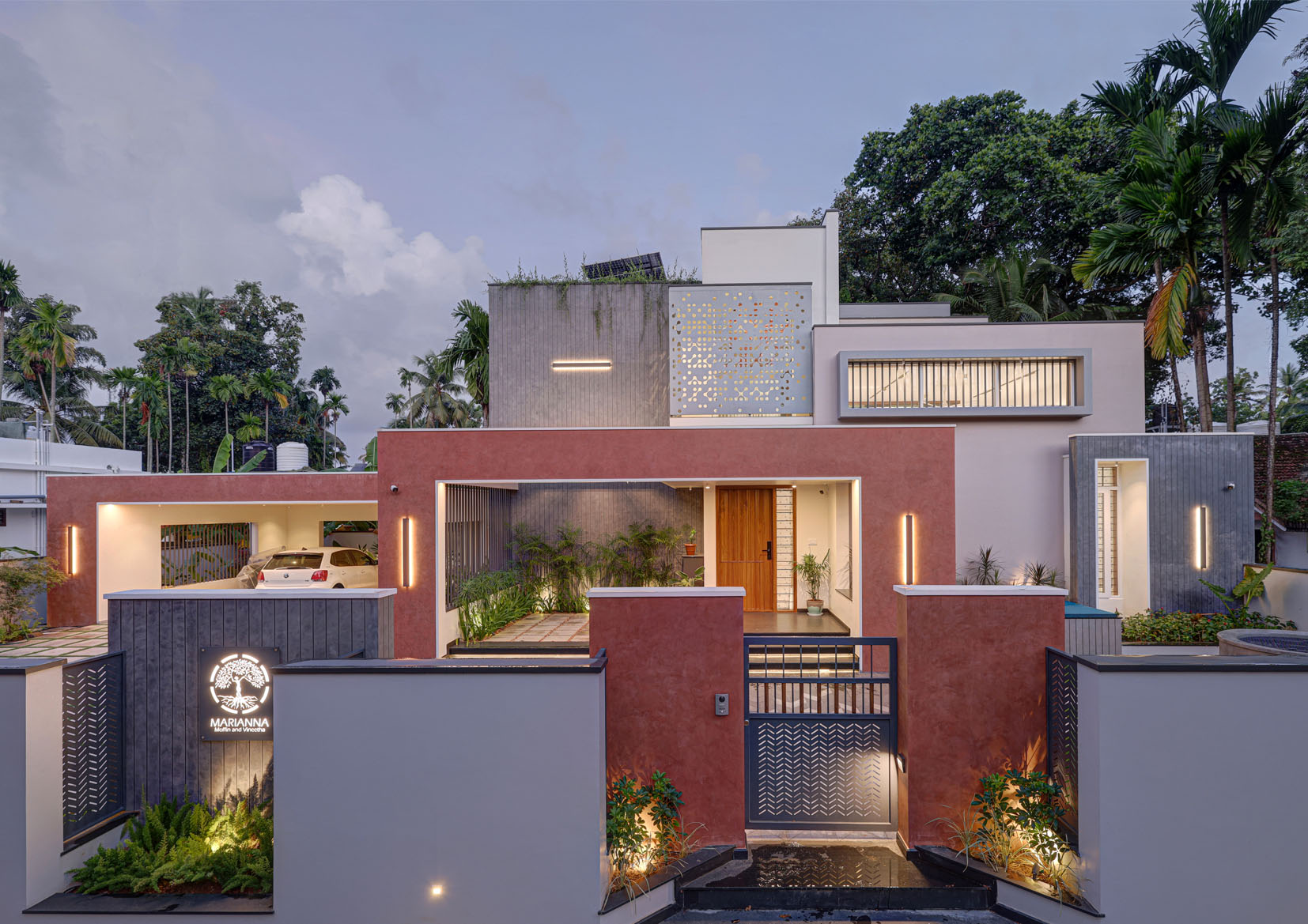 Situated in the peaceful residential area of Vypin, Ernakulam, this east-facing 14-cent plot provided an ideal foundation for a thoughtfully designed four-bedroom home. Surrounded by neighboring houses, the challenge was to create a private retreat that fosters openness, maximizes natural light, and promotes excellent cross-ventilation, blending comfort with sustainability.